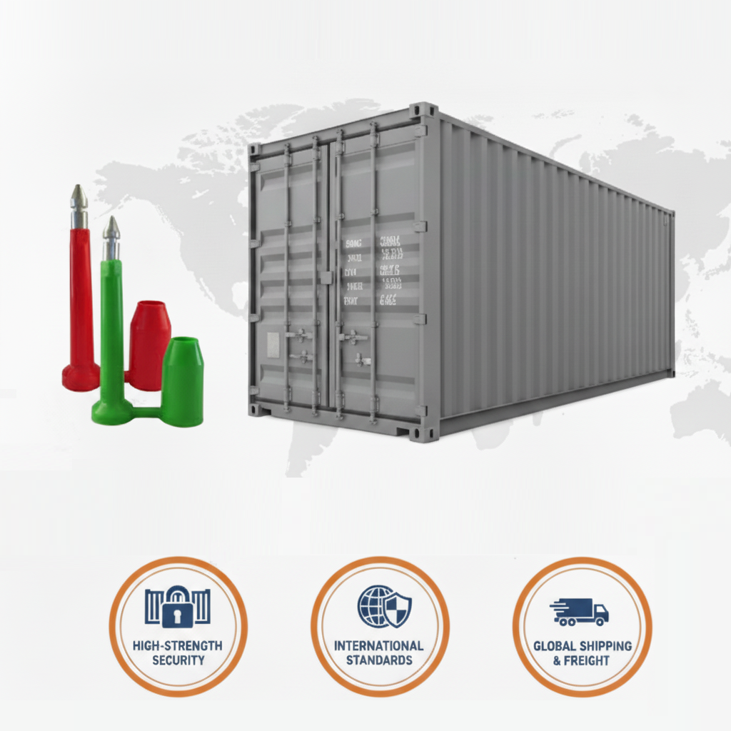 Heavy-duty seals compliant with international shipping standards, used for securing cargo and freight containers in global logistics.